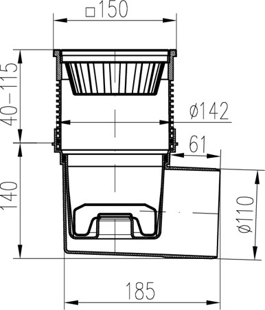 Kanalizační vpusť boční D110, NEPTUN, plastová mřížka