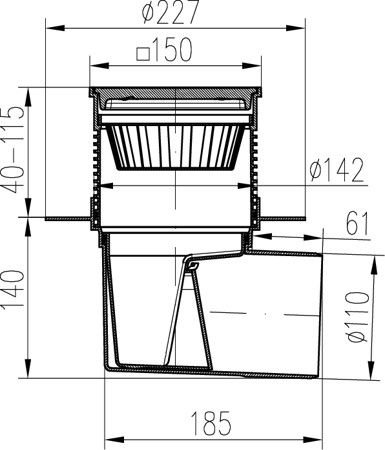 Vyrobeno z PP a PS a šedé litiny DIN 1691. Zatížení L15–1 500 kg, odolnost do 90°C, u plováku NEPTUN max do 70°C, zkoušeno dle normy EN 1253.