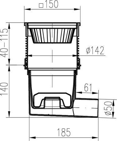 Kanalizační vpusť boční D50, NEPTUN, litinová mřížka