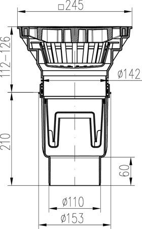 Kanalizační vpusť spodní D110-250 NEPTUN, plastová mřížka SUN se zámkem