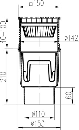 Kanalizační vpusť spodní D110, vodní hladina, plastová mřížka