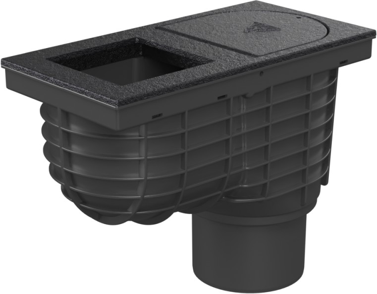 Lapač střešních splavenin spodní D110, litinový povrch, pro hranatý svod 100