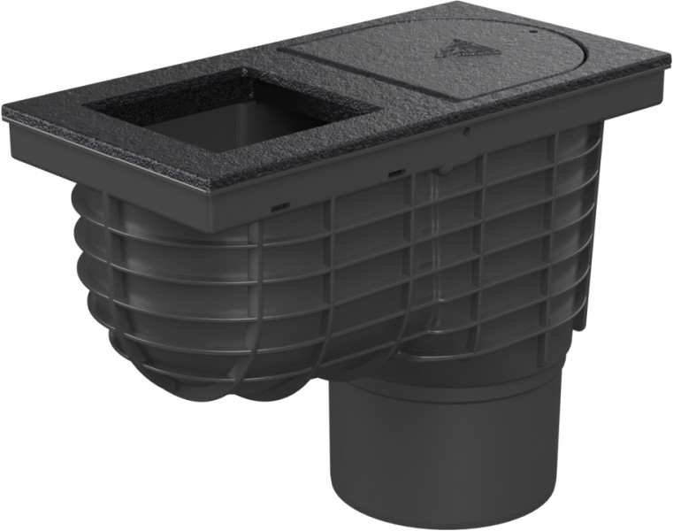 Lapač střešních splavenin spodní D125, litinový povrch, pro hranatý svod 100
