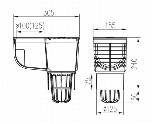 Výrobek je určen pro odvod dešťových (povrchových) vod do kanalizačních systémů vně budov a umožňuje připojení okapových svodů.