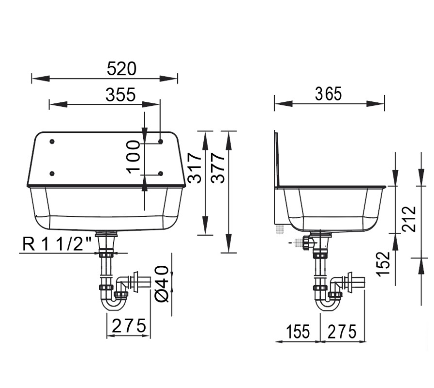 Plastová výlevka s roštem a sifonem – černá