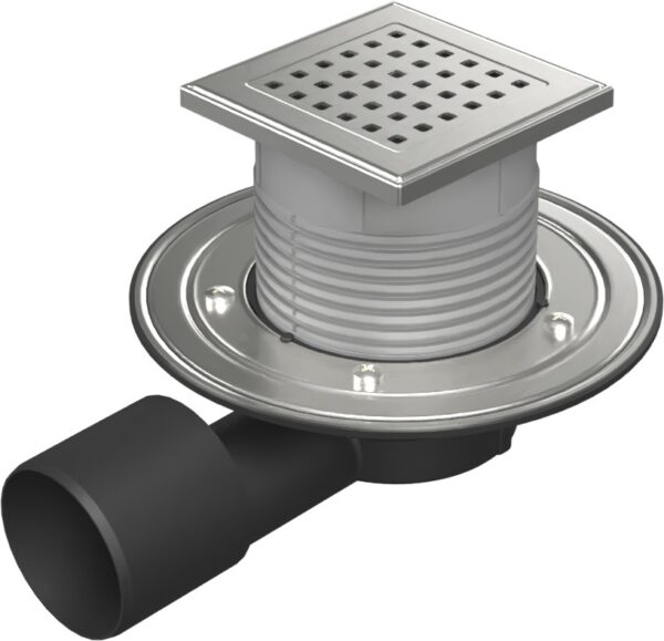 Podlahová vpusť boční D50/75, nerez příruba, rámeček, mřížka GATE