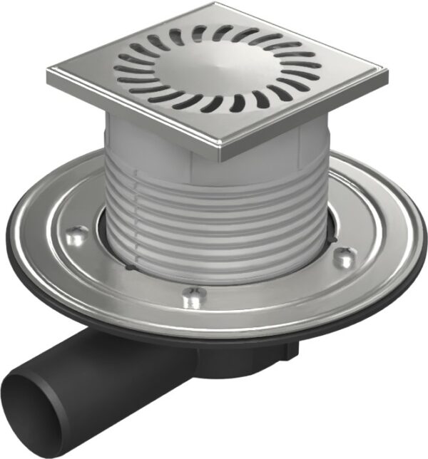 Podlahová vpusť boční D50, nerez příruba, mřížka SUN