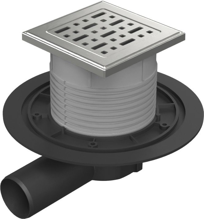 Vpusť je určena pro vnitřní a venkovní použití. Obsahuje suchou klapku a vodní hladinu. Vyrobeno z PP, PS a nerezové oceli DIN 1.4301. Zatížení K3-300 kg, odolnost do 90°C, zkoušeno dle normy EN 1253.
