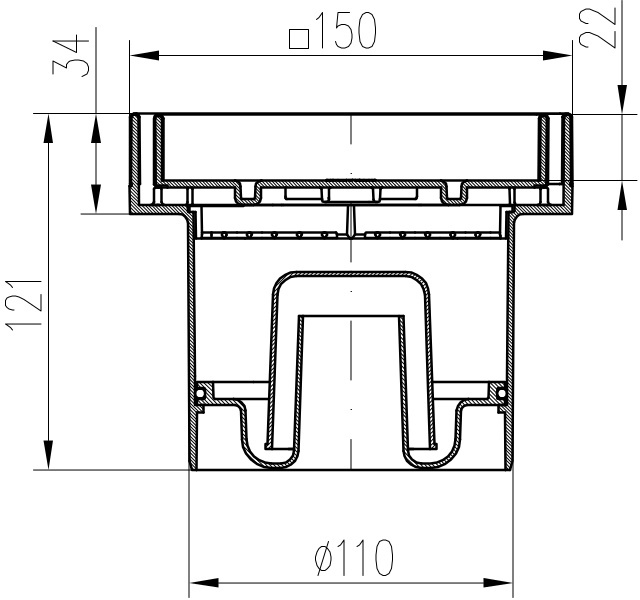 Podlahová vpusť přímá D110, nerez rámeček, mřížka CERAMICS 150