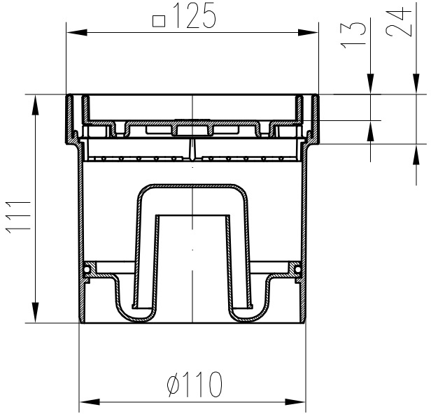 Podlahová vpusť přímá D110, nerez rámeček, mřížka CERAMICS 125