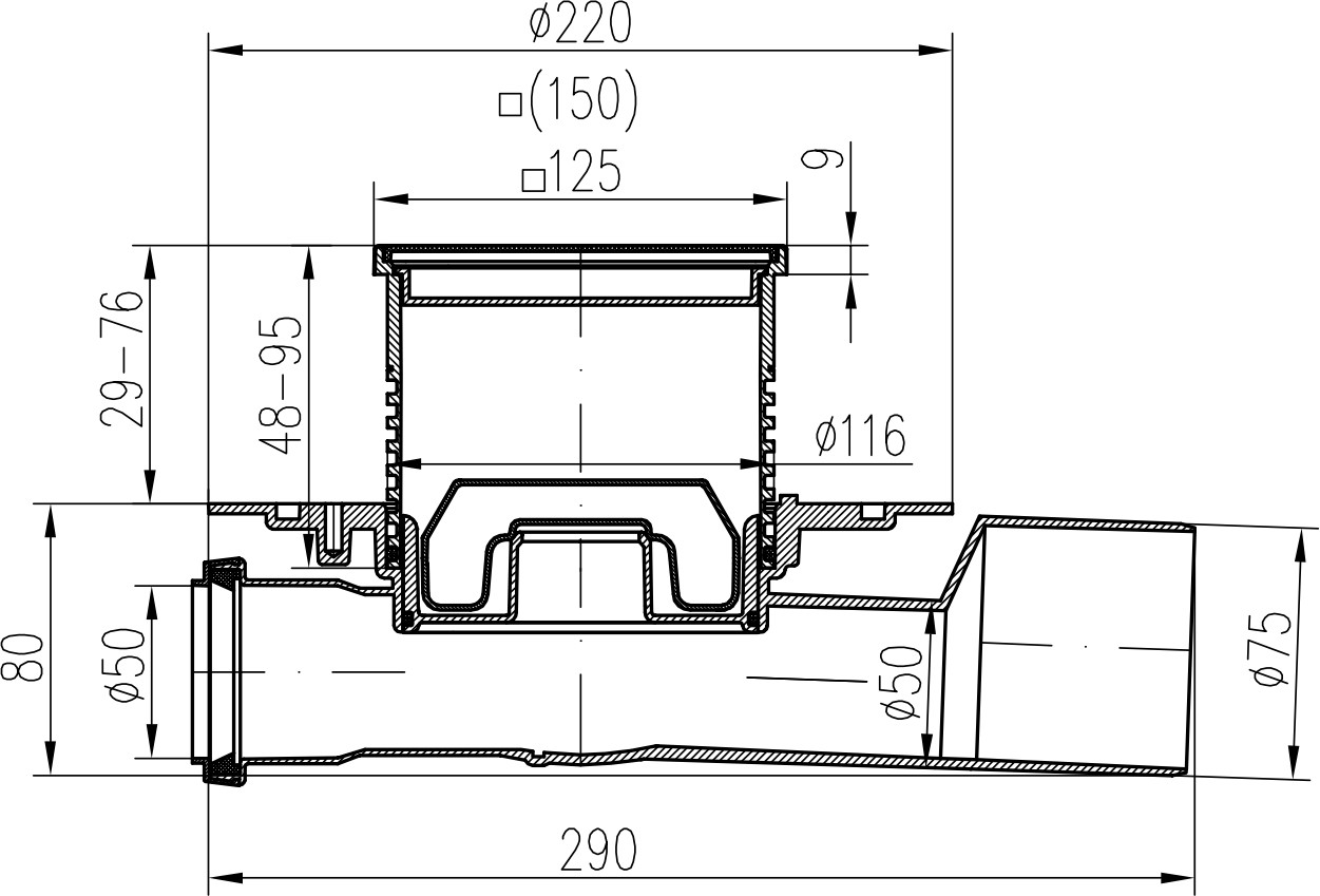 Při poklesu vodní hladiny plovák NEPTUN uzavírá odtok a tím zabraňuje zpětnému pronikání zápachu z kanalizačního potrubí. Vyrobeno z PP, PS a nerezové oceli DIN 1.4301. Zatížení K3-300 kg, odolnost do 70 °C, zkoušeno dle normy EN 1253. Černá nerezová mřížka 1,5 mm je opatřena polyesterovou termosetickou barvou.