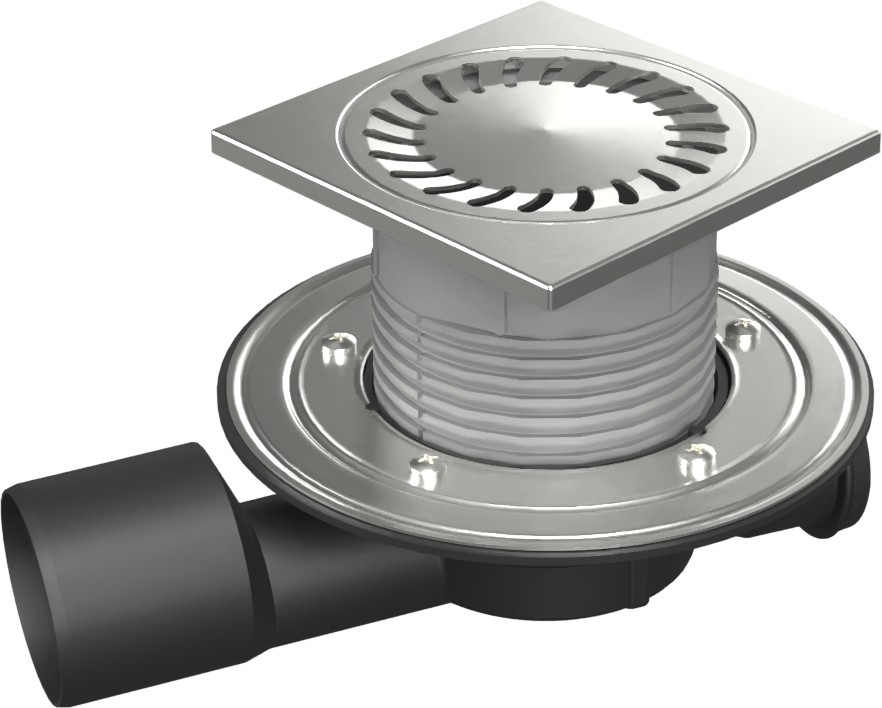 Podlahová vpusť průběžná D50/75 NEPTUN, nerez příruba, rámeček, mřížka SUN 150