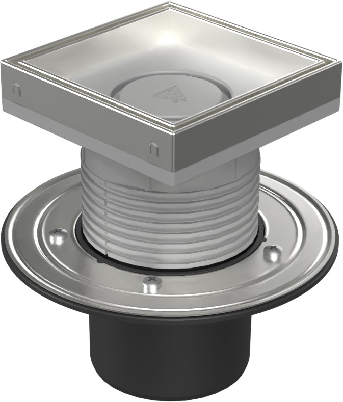 Vpusť je určena pro vnitřní a venkovní použití. Obsahuje suchou klapku a vodní hladinu. Vyrobeno z PP, PS a nerezové oceli DIN 1.4301. Zatížení K3-300 kg, odolnost do 90°C, zkoušeno dle normy EN 1253.