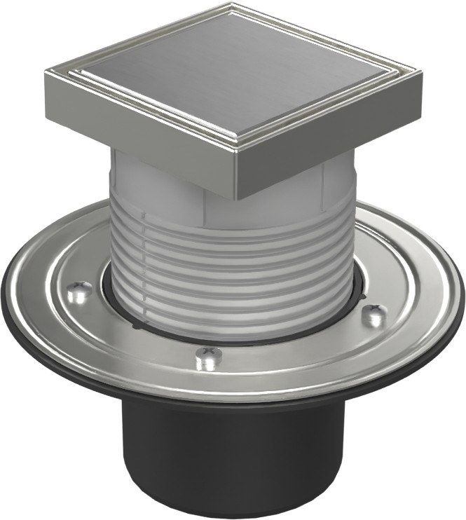 Podlahová vpusť spodní D110, nerez příruba, rámeček, mřížka STEEL 125