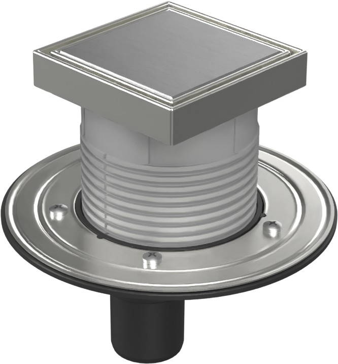 Vpusť je určena pro vnitřní a venkovní použití. Obsahuje suchou klapku a vodní hladinu. Vyrobeno z PP, PS a nerezové oceli DIN 1.4301. Zatížení K3-300 kg, odolnost do 90°C, zkoušeno dle normy EN 1253.