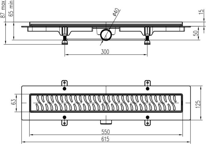 Podlahový linear. žlab 550 mm,boční D40,klasik/floor mat