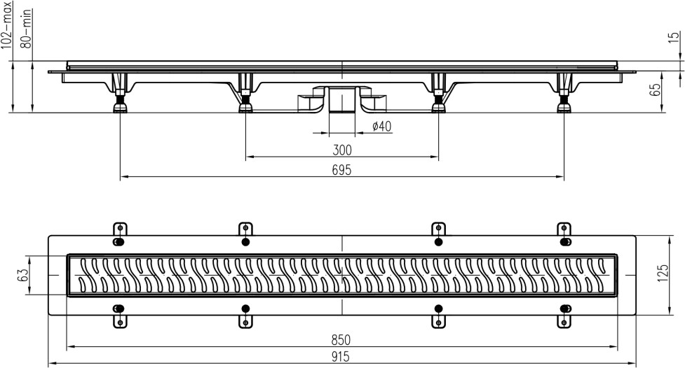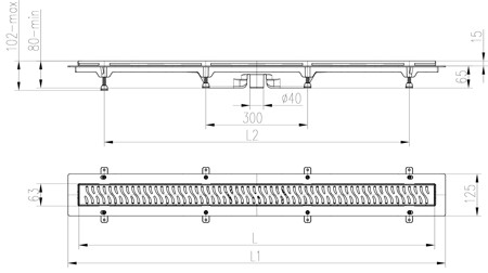 Podlahový linear. žlab černý 850 mm, spodní D40, Line černá