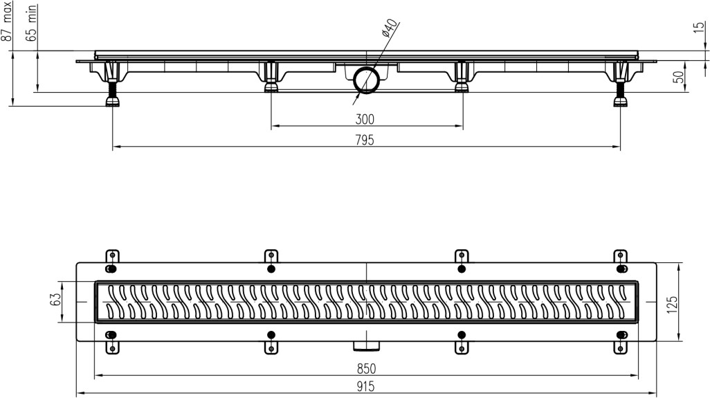 Podlahový linear. žlab černý 850 mm,boční D40,harmony černá