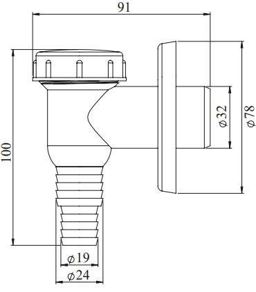 Napojení na odpadní trubku O 32 mm. Napojení hadice O 19 a O 23 mm. Suchá klapka proti šíření zápachu z kanalizace. Servisní otvor pro snadné čištění.
